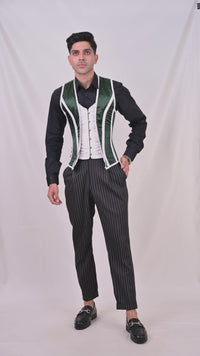 Introducing our Green & White Satin Male Corset Vest – a timeless piece designed to shape and tone your waist for a bold and standout look.