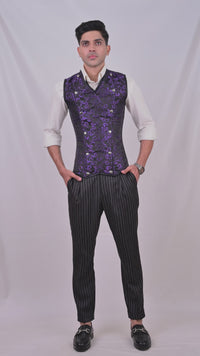Purple Brocade Male Corset Vest